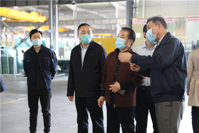 On April 30, 2020, Xie Wanbao, Deputy Director of the Municipal Bureau of Industry and Information Technology, Zhou Xinggan, Director of the County Bureau of Industry and Information Technology, Zhu Guangpu, Deputy Director, and other relevant leaders visited Jiangsu Jingtai Glass Co., Ltd. Director Xie had in-depth discussions with Mr. Li Jing, Chairman of the company, on the impact of the epidemic on the enterprise and related issues of safety production.