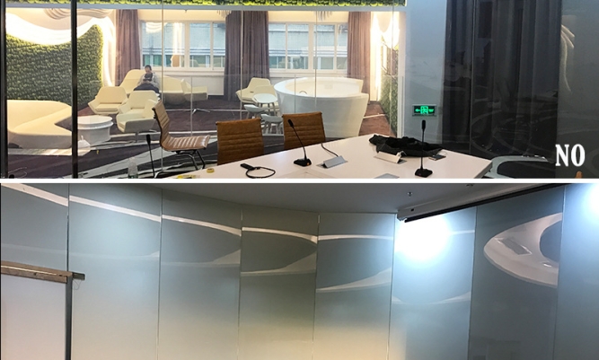 電子霧化玻璃中間的調(diào)光膜及膠片具有聲音阻尼作用,可有效阻隔噪音。